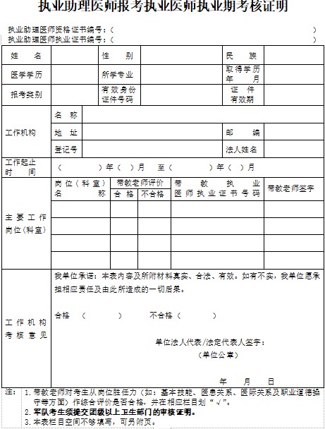 執(zhí)業(yè)助理醫(yī)師報(bào)考執(zhí)業(yè)醫(yī)師執(zhí)業(yè)期考核證明