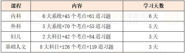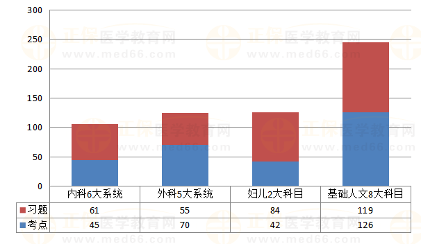 可以看到考試通過需要拿到60%的分數(shù),而臨床科目(內(nèi)外婦兒)占比達74%,也就是搞定臨床科目就可以搞定醫(yī)師資格考試。這也為大家的復習提供了參考,即得臨床者得天下,優(yōu)先學習臨床科目。