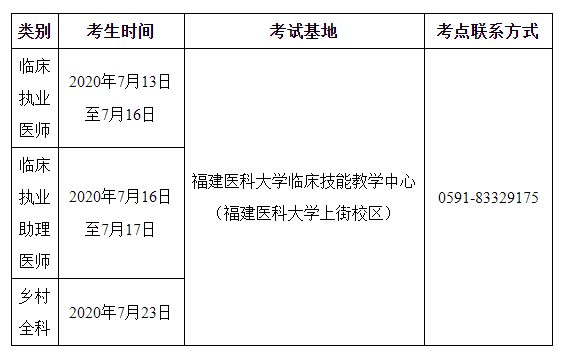 2020年臨床執(zhí)業(yè)醫(yī)師實踐技能考試福州考點考試時間、考試基地及考生須知