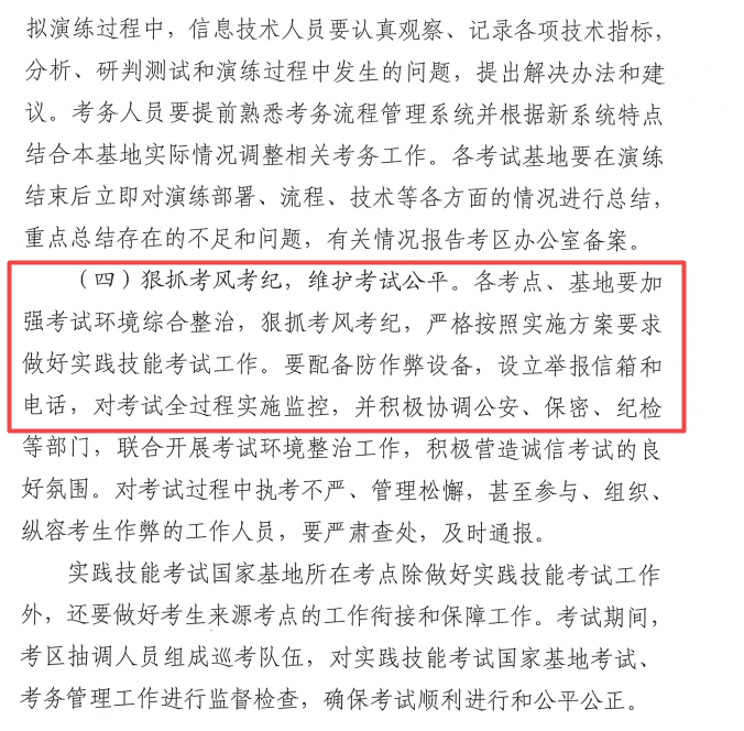 山東省在技能考試方案中提到要強化考務管理,提到要加強考試流程的信息化管理,狠抓考風考紀。