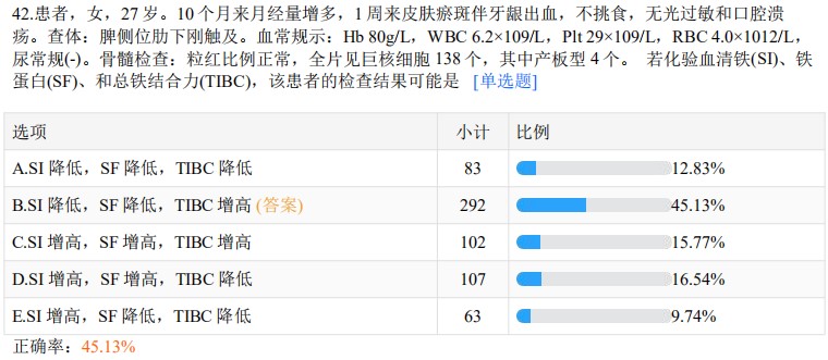 【正確率45.13%】SI降低,SF降低,TIBC增高——案例題