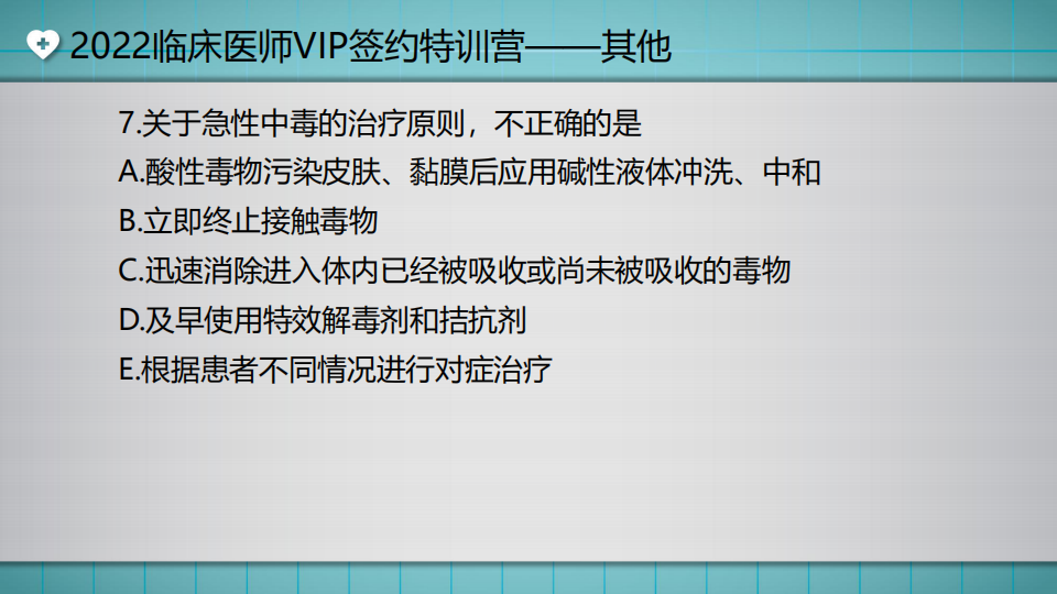 臨床醫(yī)師水平測試:關(guān)于急性中毒的治療原則,不正確的是?湯以恒老師將近期開展了兩場免費(fèi)公開課,為大家講解《其他》章節(jié)考試重點(diǎn),這也是VIP簽約特訓(xùn)營強(qiáng)化階段的最后2節(jié)課了,直播課免費(fèi)公開,還沒有參加直播,或者想再次重溫精彩瞬間的同學(xué),可以查看回放視頻哦。