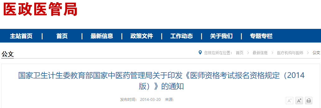 國家衛(wèi)生計生委教育部國家中醫(yī)藥管理局關(guān)于印發(fā)《醫(yī)師資格考試報名資格規(guī)定(2014版)》的通知