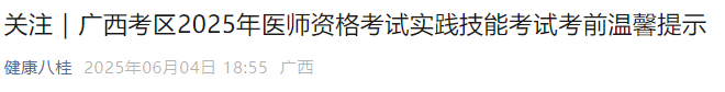 廣西2025年臨床執(zhí)業(yè)醫(yī)師實踐技能考場安排及入場須知已公布!以下為廣西考區(qū)官方發(fā)布的2025年醫(yī)師資格實踐技能考試考前注意事項,請相關考生及時查看。