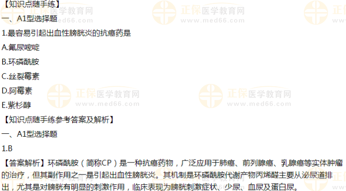 2021臨床執(zhí)業(yè)醫(yī)師模擬試題——最容易引起出血性膀胱炎的抗癌藥
