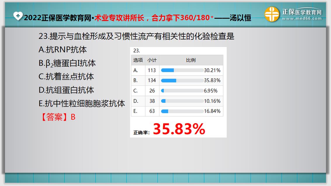 提示與血栓形成及習慣性流產有相關性的化驗檢查是?35.83%正確率模考題如下,參加2022年臨床執(zhí)業(yè)醫(yī)師考試的同學,快來看看自己是否可以答對這道題吧!詳情如下: