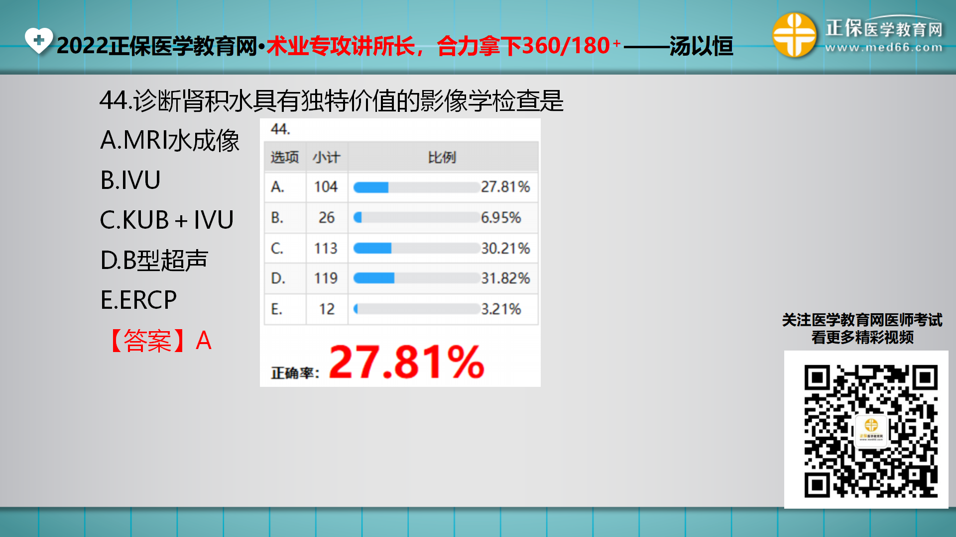 【??颊_率27.81%】診斷腎積水具有獨(dú)特價(jià)值的影像學(xué)檢查是?2022年臨床執(zhí)業(yè)醫(yī)師入學(xué)測(cè)評(píng)??碱}如下,參加2022年臨床執(zhí)業(yè)醫(yī)師考試的同學(xué),快來看看自己是否可以答對(duì)這道題吧!詳情如下: