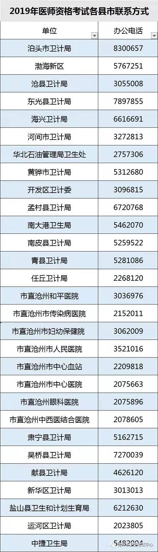 滄州市2020年臨床執(zhí)業(yè)醫(yī)師現(xiàn)場確認縣區(qū)聯(lián)系電話