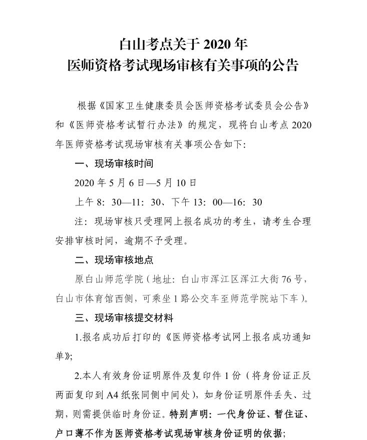 - · 白山2020臨床執(zhí)業(yè)醫(yī)師現(xiàn)場審核時間/地點/材料要求