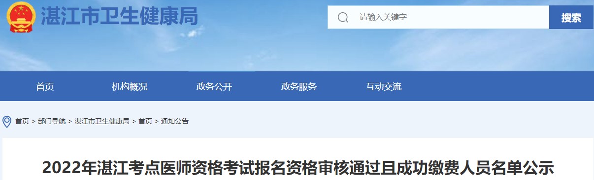 2022年湛江考點醫(yī)師資格考試報名資格審核通過且成功繳費人員名單公示