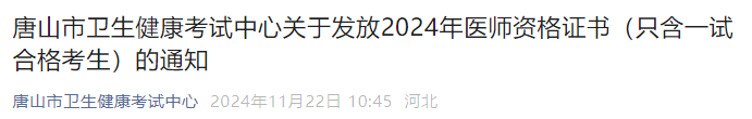 1.唐山市衛(wèi)生健康考試中心醫(yī)師資格證發(fā)放僅針對(duì)報(bào)名點(diǎn)為唐山考點(diǎn)考生,其他地市考生請(qǐng)到報(bào)名點(diǎn)所在地市領(lǐng)取。