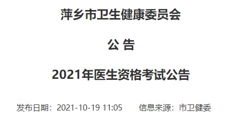 萍鄉(xiāng)考點(diǎn)2021年臨床助理醫(yī)師資格考試二試報名和繳費(fèi)時間!醫(yī)學(xué)教育網(wǎng)編輯整理分享有關(guān)通知內(nèi)容如下: