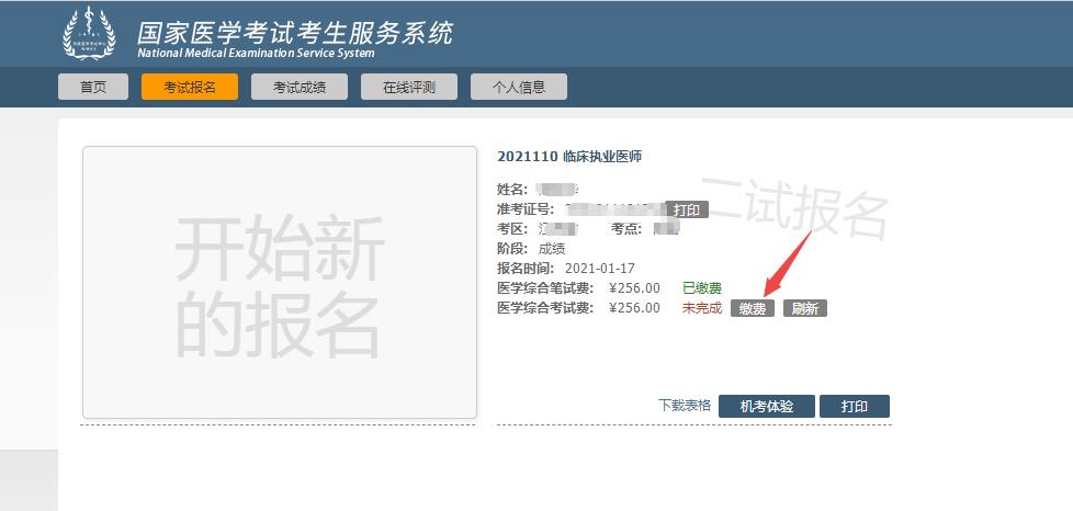 全國(guó)2021年臨床助理醫(yī)師考試二試網(wǎng)上繳費(fèi)步驟說明