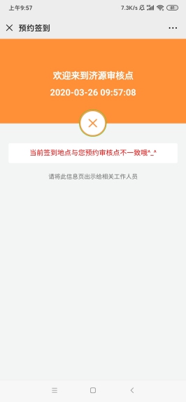 考生預(yù)約的審核點與掃碼簽到的審核點不一致,簽到失敗??忌鷽]有當天的預(yù)約單簽到失敗。