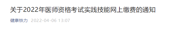 伊春鐵力考點2022年臨床助理醫(yī)師資格考試實踐技能網(wǎng)上繳費的通知