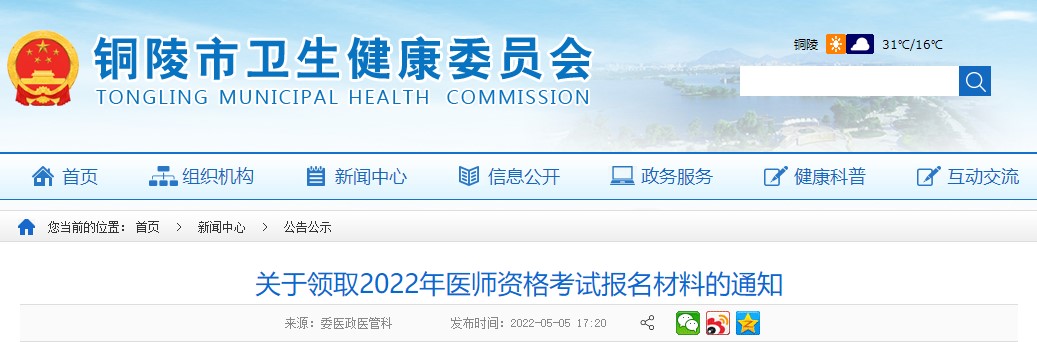 銅陵考點(diǎn)2022年臨床助理醫(yī)師報(bào)名材料領(lǐng)取通知