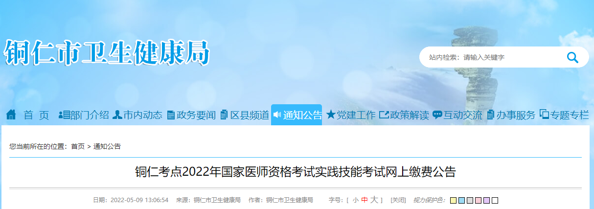 2022年銅仁市考點(diǎn)臨床助理醫(yī)師實(shí)踐技能繳費(fèi)公告