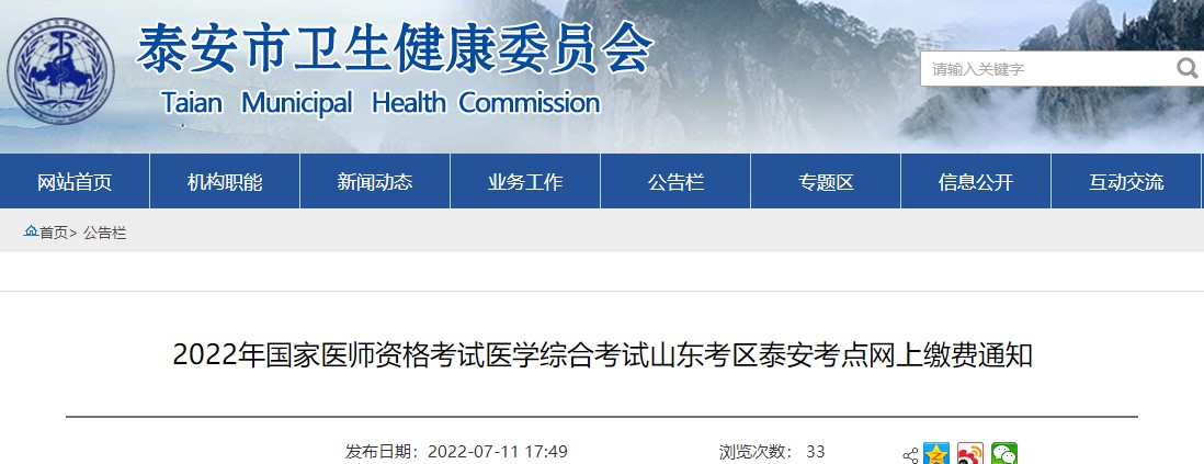 泰安考點(diǎn)2022年臨床助理醫(yī)師綜合筆試網(wǎng)上繳費(fèi)入口已開(kāi)通