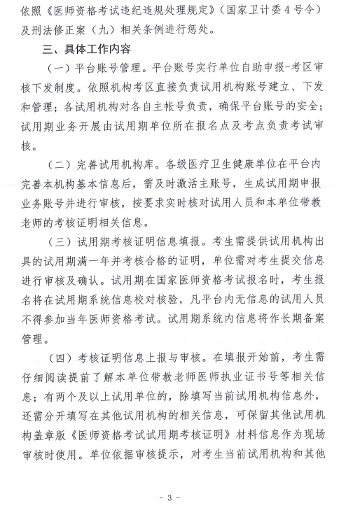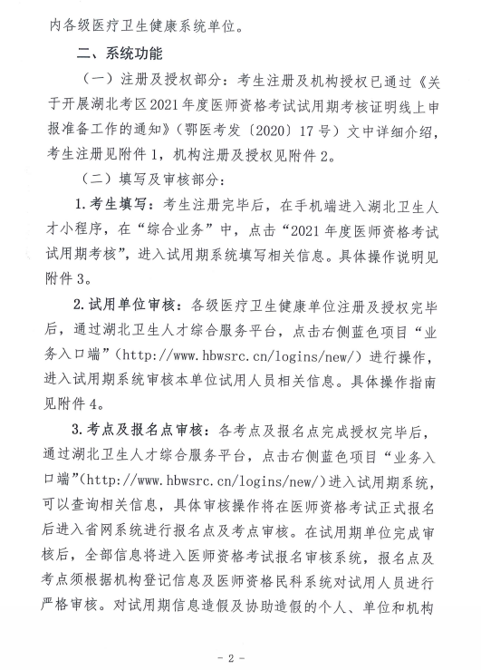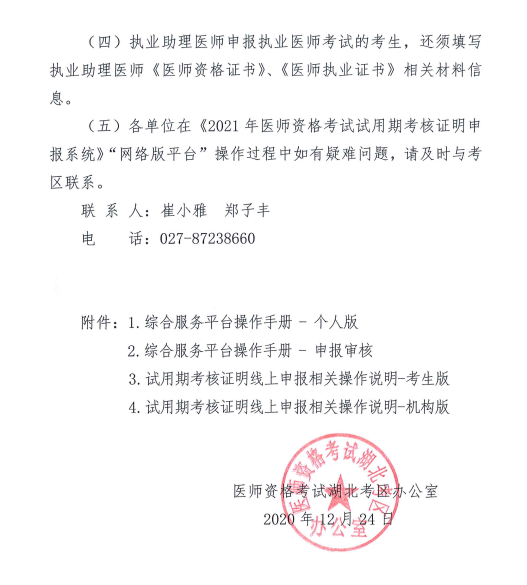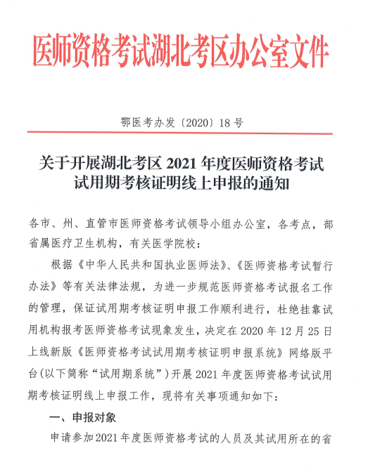通知原件:關(guān)于開(kāi)展湖北考區(qū)2021年度醫(yī)師資格考試試用期考核證明線上申報(bào)的通知