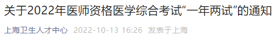 關(guān)于2022年醫(yī)師資格醫(yī)學(xué)綜合考試“一年兩試”的通知