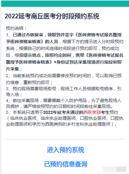 商丘考點2022年延考考生現場采集預約系統(西醫(yī)類別)