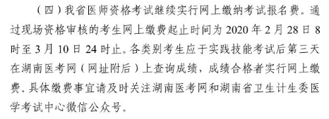 2020年湖南省臨床助理醫(yī)師網(wǎng)上繳費(fèi)時間通知