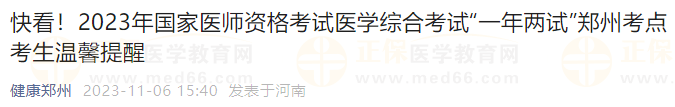 快看!2023年國家醫(yī)師資格考試醫(yī)學(xué)綜合考試“一年兩試”鄭州考點(diǎn)考生溫馨提醒