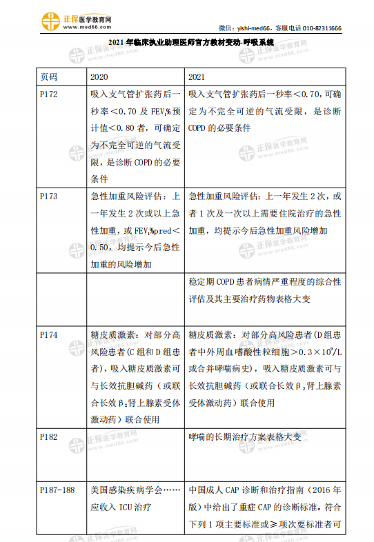 2021年臨床執(zhí)業(yè)助理醫(yī)師考試【呼吸系統(tǒng)】官方教材變動細則
