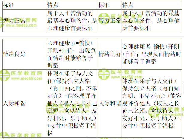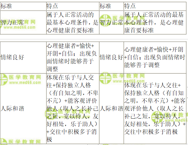 三、【問題】簡述心理健康的標準。
