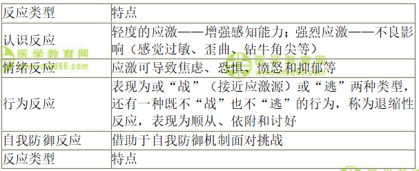 五、【問題】簡述心理應激的反應類型。