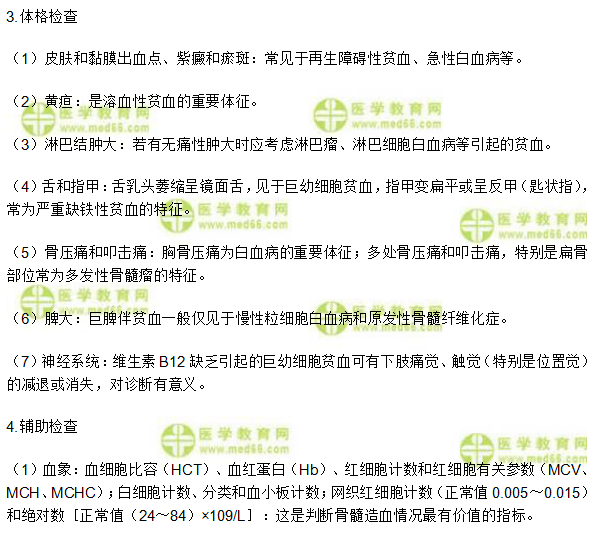 (4)骨髓檢查:各種白血病引起的貧血只有骨髓檢查才能確診,再生障礙性貧血和巨幼細(xì)胞性貧血的骨髓特點(diǎn)對(duì)診斷有重要價(jià)值。