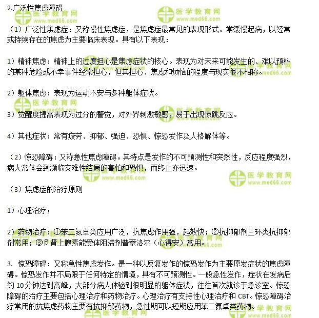 1.神經(jīng)癥:是一組精神障礙。除癔癥外,沒有精神病性的癥狀,病程大多是持續(xù)遷延的。病前多有一定素質(zhì)和人格基礎(chǔ),起病常與社會心理因素有關(guān),其癥狀無可證實的器質(zhì)性病變作基礎(chǔ),包括恐懼癥)、焦慮癥、強迫癥、醫(yī)學(xué)|教育網(wǎng)各種軀體障礙、疑病癥、神經(jīng)衰弱等。