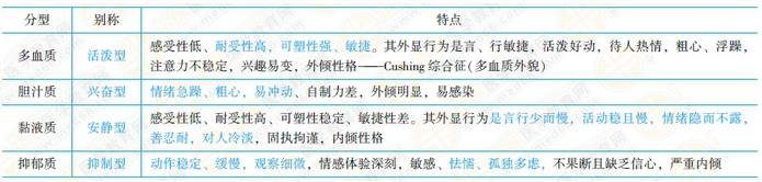 3.氣質(zhì)分型古希臘名醫(yī)希波克拉底將人的氣質(zhì)分為四型,并認(rèn)為人有四種體液:血液、黃膽汁、黑膽汁和黏液,根據(jù)不同體液在人體內(nèi)的優(yōu)勢(shì),把氣質(zhì)命名為多血質(zhì)、膽汁質(zhì)、抑郁質(zhì)和黏液質(zhì)。