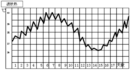 ④波狀熱:體溫逐漸升高達(dá)39℃或以上,持續(xù)數(shù)天后逐漸下降至正常水平,數(shù)天后又逐漸上升,如此反復(fù)交替發(fā)作多次。