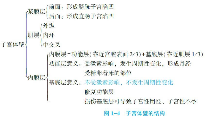 (1)宮體:子宮體壁由3層組織構(gòu)成,由內(nèi)向外分別是子宮內(nèi)膜層、肌層、漿膜層。