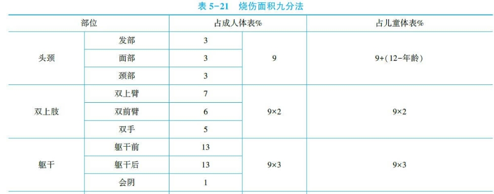 (1)九分法:按體表面積劃分為11個9%的等份,另加1%,構(gòu)成100%的體表面積。