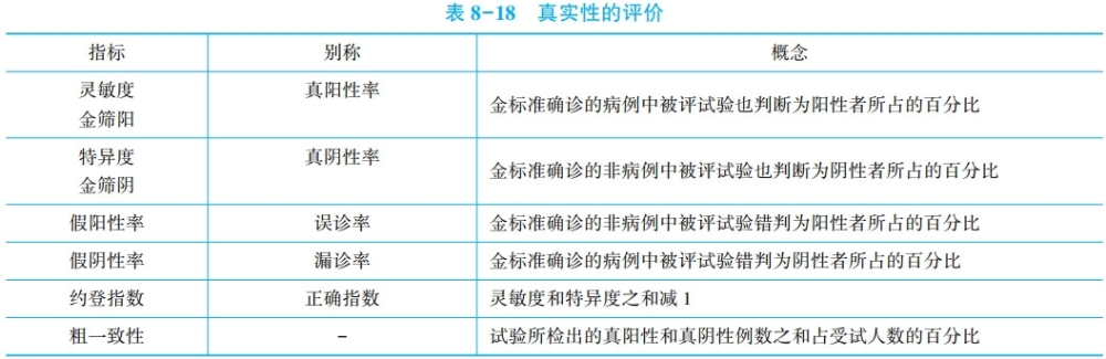 ①真實性:也稱效度或準(zhǔn)確性,是指測量值與實際值(金標(biāo)準(zhǔn)的測量值)符合的程度。