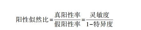 陽性似然比是試驗結(jié)果真陽性率與假陽性率之比,說明患者中出現(xiàn)某種試驗結(jié)果陽性的概率是非患者的多少倍。