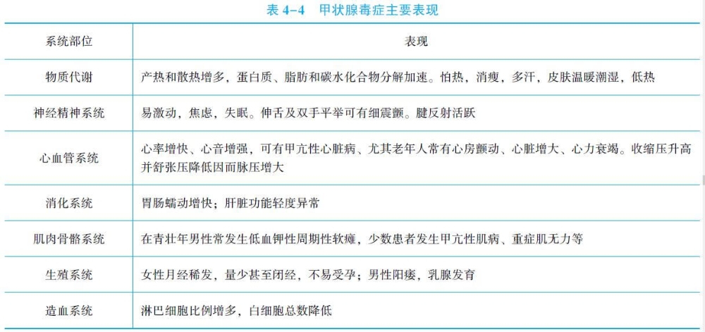 1.甲狀腺激素分泌過多的表現(xiàn)(甲狀腺毒癥狀) 主要為物質(zhì)代謝旺盛以及各系統(tǒng)興奮性增高。