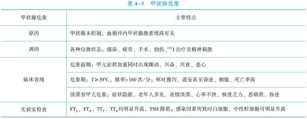 (3)甲亢合并周期性癱瘓:其發(fā)病與肌細胞Na+-K+-ATP酶活性升高,血清鉀向細胞內(nèi)急性轉(zhuǎn)移有關(guān),導(dǎo)致低鉀血癥。臨床以青年男性多見,多表現(xiàn)為晨起雙下肢無力、軟癱,病情發(fā)展可累及上肢、呼吸肌,甚至導(dǎo)致死亡。
