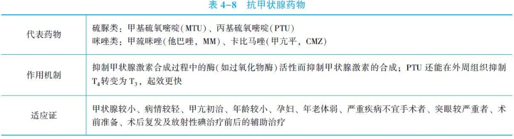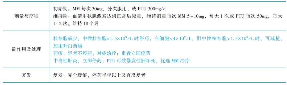 (1)PTU:首選,起效快,可抑制TH合成,首劑600mg,后150~200mg,每日三次。
