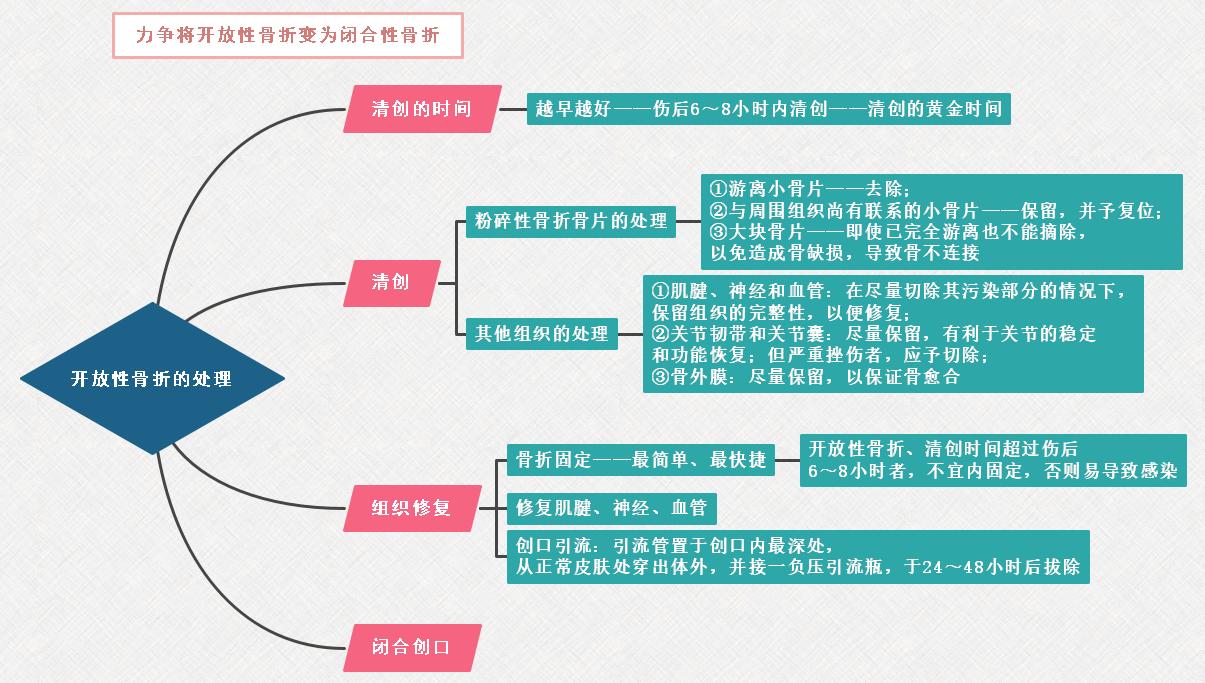 2021年臨床助理醫(yī)師筆試筆記:開放性骨折處理的思維導圖