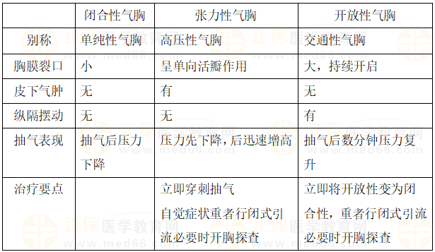 知識(shí)點(diǎn)鏈接:閉合性、張力性、開(kāi)放性氣胸對(duì)比