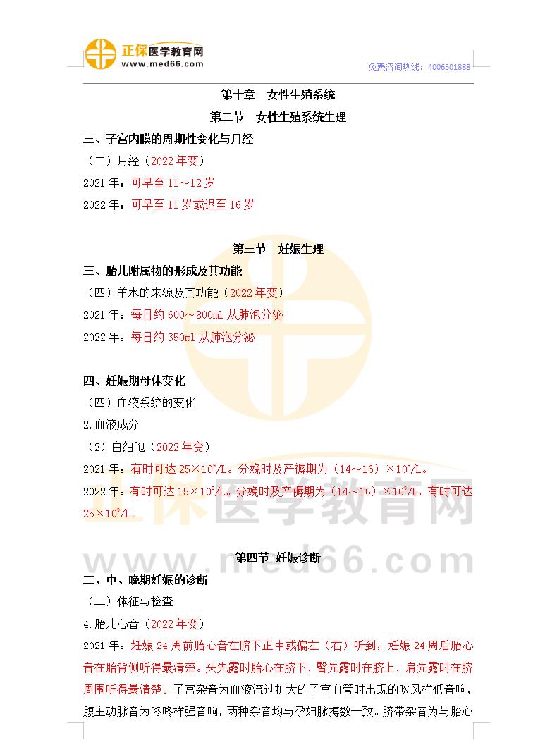 2022年臨床助理醫(yī)師《女性生殖系統(tǒng)》官方教材現(xiàn)已公布!醫(yī)學教育網(wǎng)專業(yè)老師經(jīng)與2021年教材對比,整理了相關(guān)變動,醫(yī)學教育網(wǎng)編輯分享“2022年臨床執(zhí)業(yè)助理醫(yī)師《女性生殖系統(tǒng)》教材變動細則”如下: