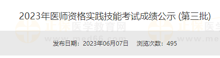 原文通知標(biāo)題:2023年醫(yī)師資格實踐技能考試成績公示 (第三批)
