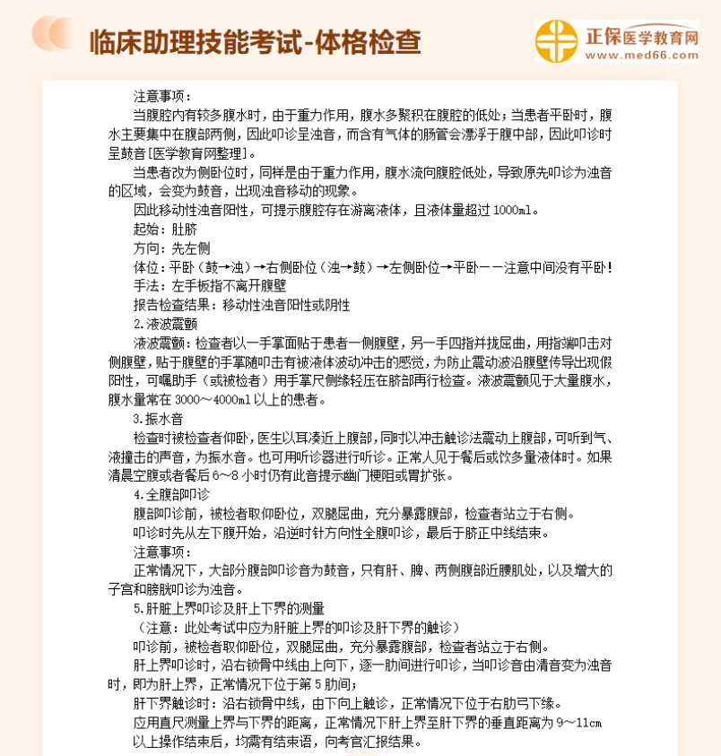 以上就是醫(yī)學(xué)教育網(wǎng)關(guān)于“臨床助理醫(yī)師實(shí)踐技能考試體格檢查模擬題:腹部叩診”的相關(guān)介紹,希望能夠幫助到大家,更多資訊盡在醫(yī)學(xué)教育網(wǎng)!