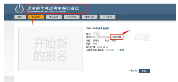 2025年國家醫(yī)師資格考試實踐技能考試定于6月14日開考??紖^(qū)將于6月5日9:00開放準考證打印功能,請考生登錄國家醫(yī)學考試網(wǎng)(www.nmec.org.cn),進入“國家醫(yī)學考試考生服務(wù)系統(tǒng)——個人界面”,點擊準考證號后的“打印”按鈕,打印準考證(如下圖)。準考證是考生考試的唯一憑證,請妥善保管。