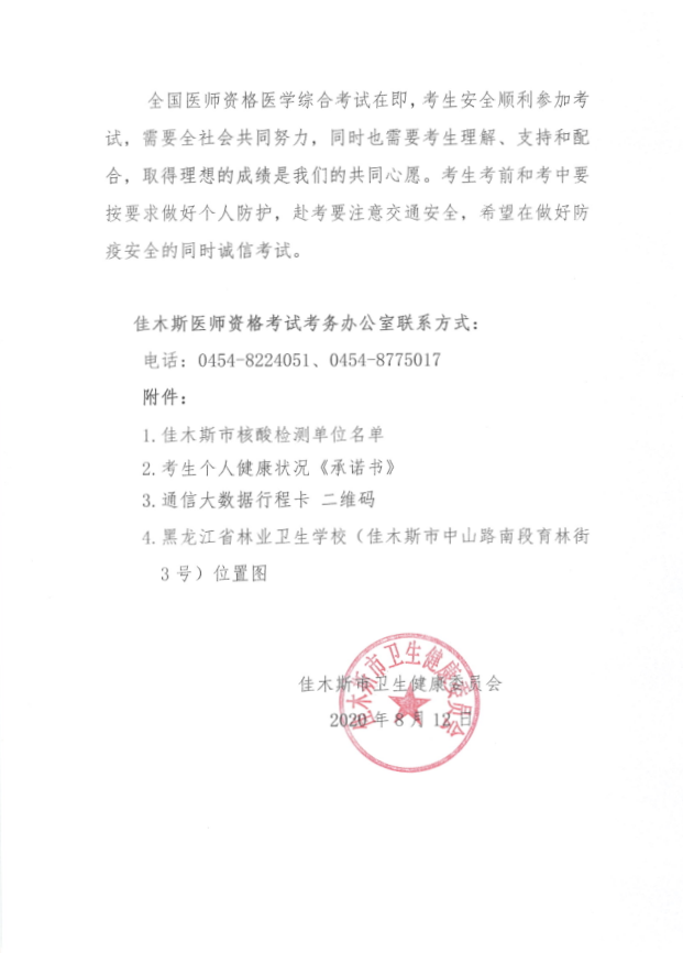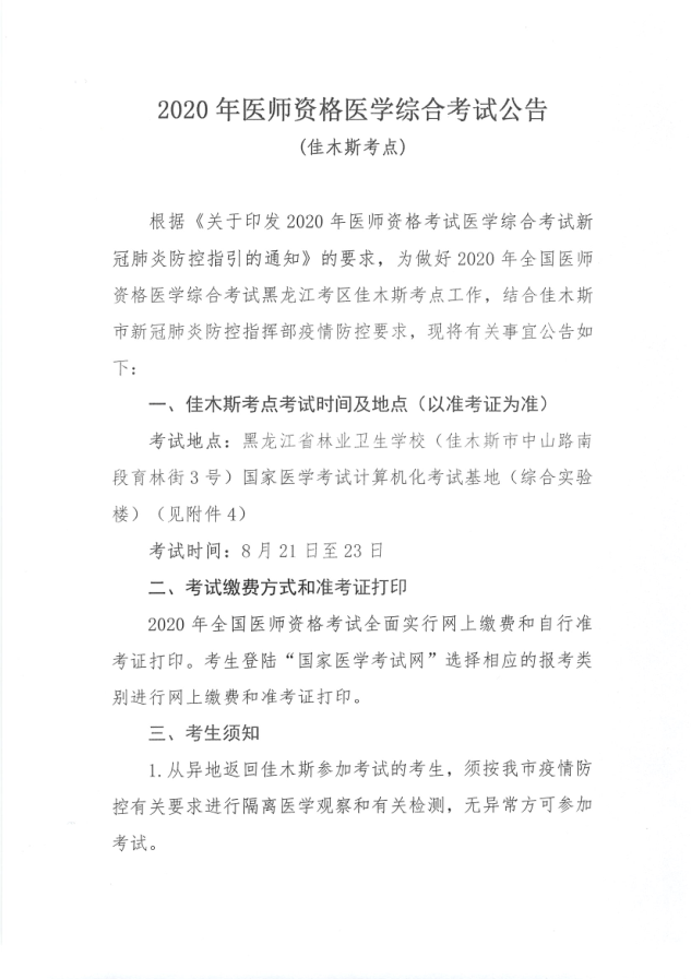 2020年黑龍江佳木斯臨床助理醫(yī)師綜合筆試考試考前疫情防控考生須知