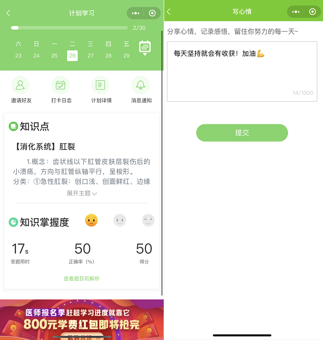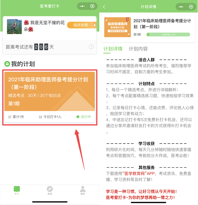 還等什么?加入“醫(yī)考愛打卡”,和所有醫(yī)考人一起奮戰(zhàn)吧!學習是一種習慣,讓好習慣從今天開始!