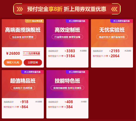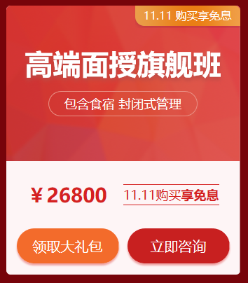 高端面授旗艦班,包含食宿,封閉式管理!想要快速提升,還得看這個!該班次在11月11日當天同樣享受免息大禮!另外還有更有大禮包等你領(lǐng)!